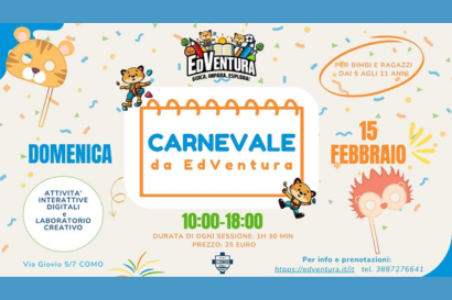 Bambini,Incontri e Corsi 15 feb 2026 Carnevale da EdVentura Attività interattive digitali e laboratorio creativo Leggi di più